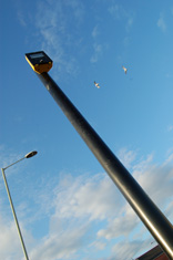Puffin crossing units at the top of four-metre columns. Pedestrians will
