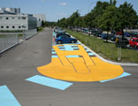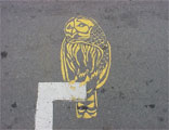 Roadsworth Canada The grey area between graffiti and vandalism is more than theoretical for Roadsworth: his controversial street images have turned pavement into politics in the city of Montreal and rekindled debate about the nature of public art. Peter Gibson, the man behind the Roadsworth graffiti identity, began taking to the streets of Montreal in the early mornings of late 2001, spray-painting cyclist symbols on roads to protest the lack of bike lanes and paths in the city. Gradually his street images developed into increasingly symbolic displays of civic and environmental critique: pedestrian crossings on the Plateau Mont-Royal turned into giant footprints; orange stencils of barbed wire lined crosswalks; heart monitor-like spikes and valleys punctuated centre lines on roadways. |